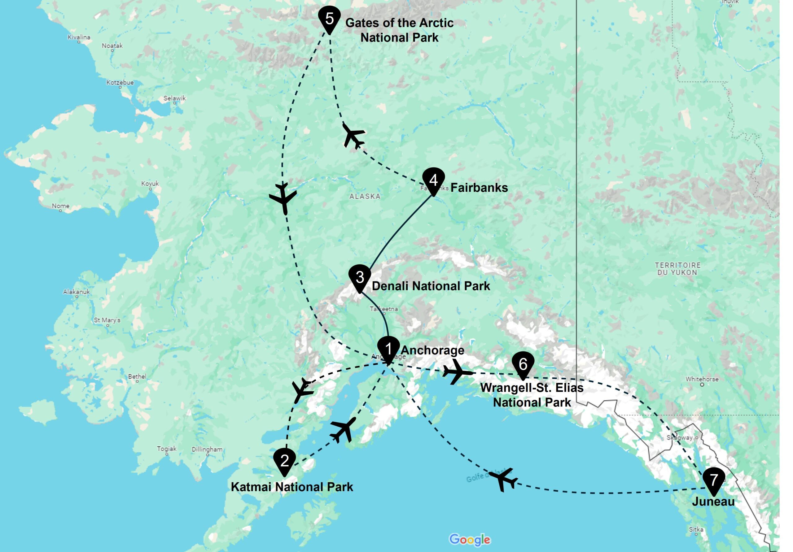 Jours 10-11Gates of the Arctic NP > Wrangell-St. Elias NP (via Anchorage)