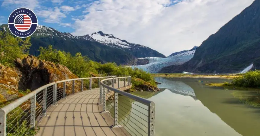 Juneau, la capitale de l'État, accessible uniquement par bateau ou avion, offre une expérience unique. Elle se distingue par son magnifique cadre au pied des montagnes et en bord de mer. Le glacier Mendenhall, à proximité, est un site spectaculaire à visiter. Juneau est également un point de départ pour des croisières dans les fjords et des excursions d'observation des baleines.