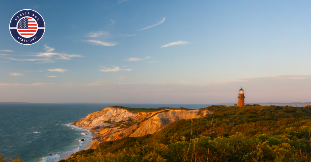 - Après un court trajet en ferry, Martha's Vineyard s'offre à vous avec sa diversité étonnante, des plages immaculées aux charmants villages de pêcheurs. Edgartown, avec ses demeures du XIXe siècle et son port pittoresque, raconte l'histoire d'un passé prospère, tandis que le phare de Gay Head à Aquinnah offre des vues spectaculaires sur les falaises colorées et l'océan infini.