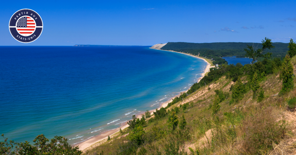 Une visite incontournable vous attend à Sleeping Bear Dunes National Lakeshore, où les dunes de sable majestueuses se jettent dans les eaux turquoise du lac Michigan. Marchez le long des sentiers sinueux, respirez l'air frais de la nature et laissez-vous émerveiller par la beauté brute de ce paysage époustouflant.