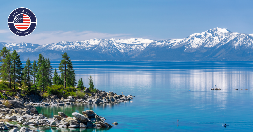 - Votre aventure continue en direction de Lake Tahoe, un des plus grands lacs alpins d'Amérique du Nord, connu pour sa clarté d'eau exceptionnelle et ses paysages montagneux à couper le souffle. L'arrivée à Lake Tahoe est un moment magique, où les eaux cristallines rencontrent le ciel bleu et les sommets enneigés des montagnes.