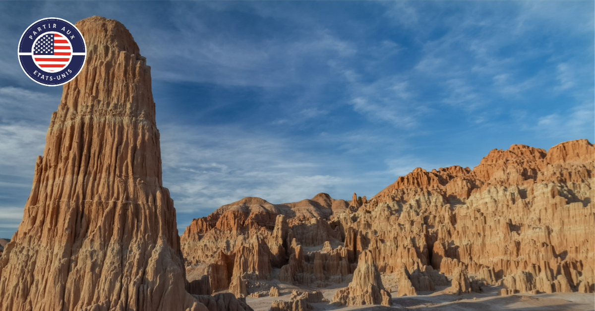 Poursuivez vers Pioche, un joyau caché, où le Cathedral Gorge State Park vous attend avec ses formations géologiques uniques, sculptées par le temps. Laissez cette nature inspirante être le décor de deux nuits sous les étoiles.