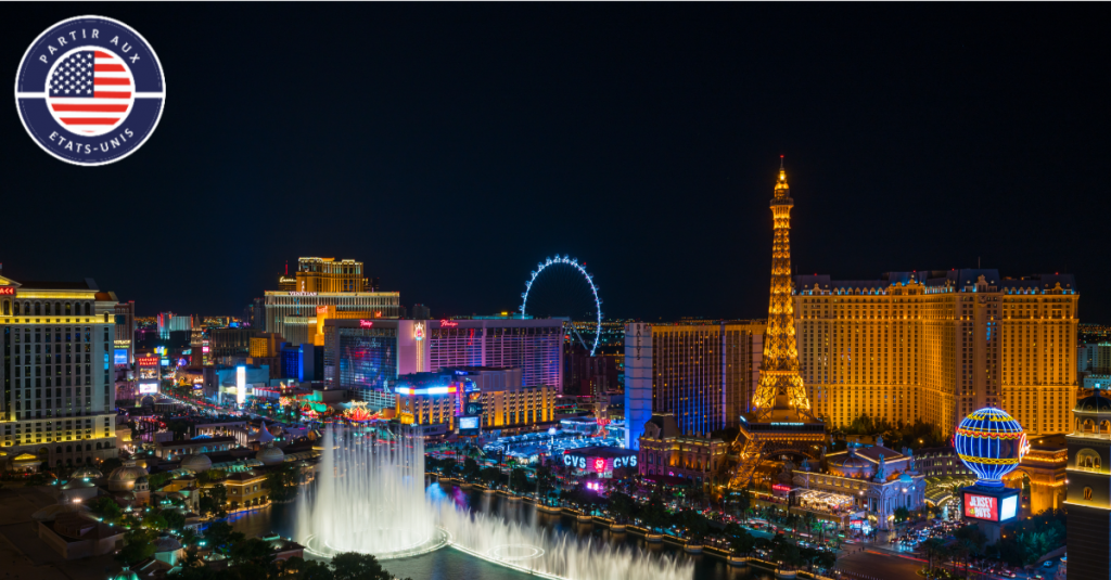 - Installation à l'hôtel et découverte du Strip à pied, l'occasion d'admirer les hôtels et casinos légendaires, visite du célèbre Bellagio et ses galeries à l'italienne, pour ensuite au spectacle de fontaines, suivi d'une exploration de l'expérience Fremont Street. Selon vos envies, profitez de la roue d'observation High Roller pour une vue panoramique sur Las Vegas illuminée.