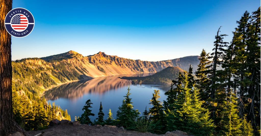 Matinée: Arrivée au Crater Lake National Park. Commencez par une visite au Rim Village pour admirer la vue sur le lac.