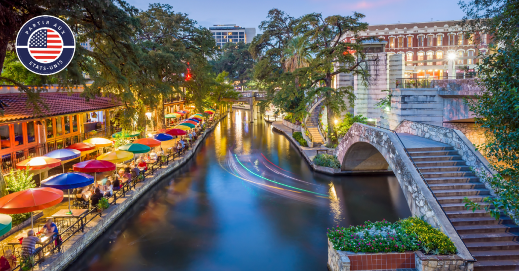 - San Antonio, une ville riche d'histoire et de culture, est le point de départ idéal pour votre aventure texane. Après votre arrivée, prenez le temps de vous installer et de vous acclimater. Commencez votre exploration par une promenade sur la célèbre River Walk, un réseau pittoresque de sentiers le long du fleuve San Antonio, bordé de restaurants, boutiques, et d'espaces verts.